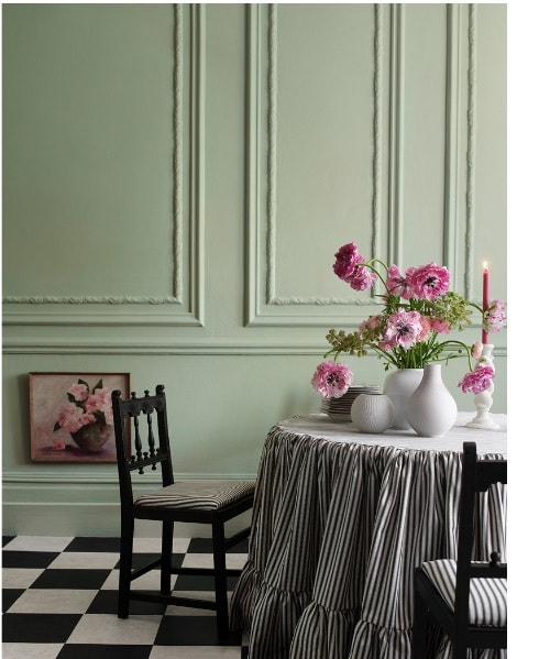 「テールベルト」は、十分な白が含まれているクールなニュートラルなグレーグリーンで、配色内のニュートラルとして使用できます。テール ヴェルテは、ブルー グリーンの穏やかさ(しかし無個性ではない)を活かし、有機的でわずかに茶色の顔料を含むことでバランスをとっています。その名が示すように、これは顔料のグリーン・アースからインスピレーションを得た非常に伝統的な色合いです。これは、中世のイタリアの画家が中間色と影の肌色の下塗りに使用した色です。