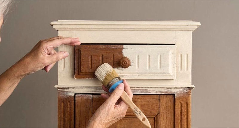 ヒント:アニースローン・チョークペイントブラシのような天然剛毛ブラシで縦横無尽に塗装することで、塗装面にブラシによる筆ムラ(ブラシストローク)を簡単につけることができ、表情豊かなテクスチャー仕上げが可能になります。
