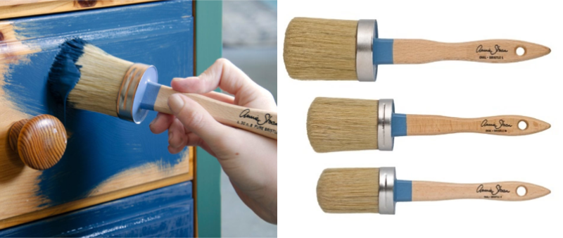 質感のある塗装がお好みの場合はチョークペイント用に特別に作られた天然剛毛製のオーバルブラシが最適です。このブラシは天然毛(イノシシ)で多くの塗料を保持し、非常に扱いやすく最少ストロークでより広いカバレッジを得ることができるので、ブラシに塗料をつけすぎないで下さい。自然な毛は枝毛を持っているので、塗料が中に広がり、きれいで均一なブラシストロークを作成します。このブラシストローク(筆跡)が表情豊かなテクスチャーとなります。縦横無尽にブラシを走らせることにより、ナチュラルなテクスチャーが生まれます。
