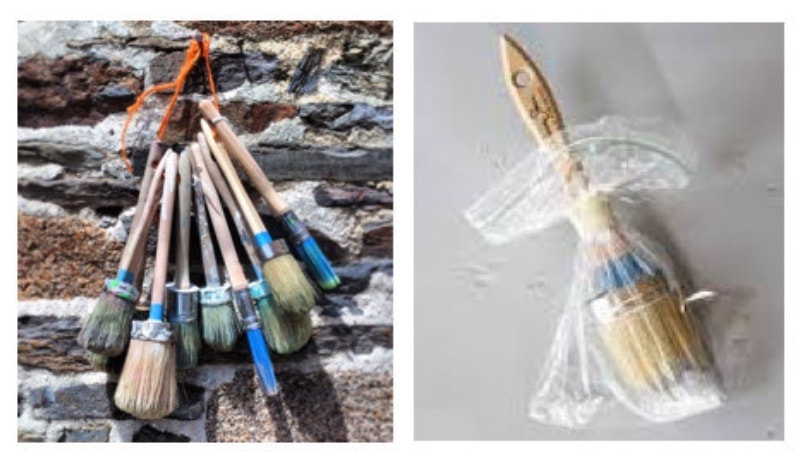塗装作業中に作業を中断する場合は、ブラシに付着した塗料が固まらないようにプラスチック袋に入れて保管して下さい。作業終了後は速やかに洗浄して下さい。