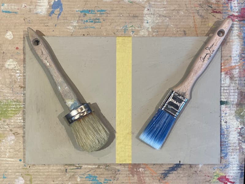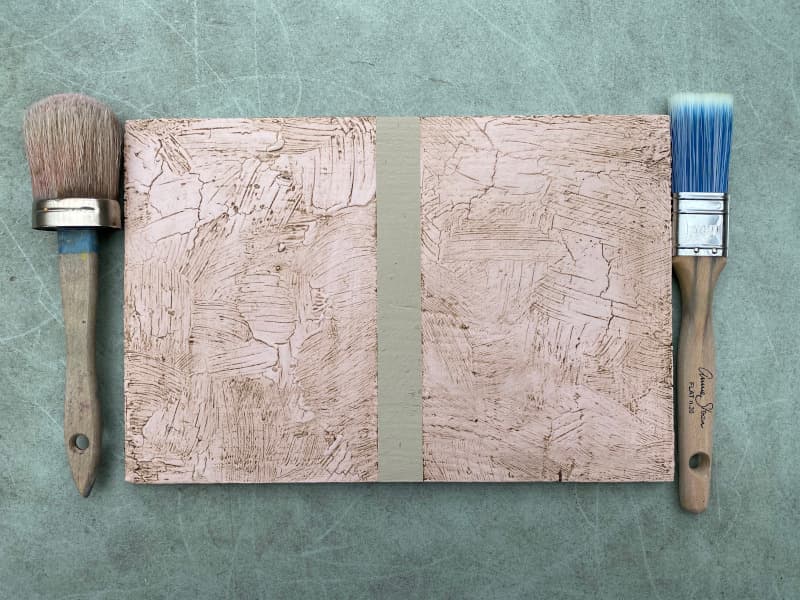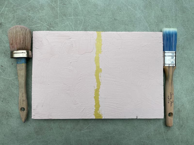 - アニースローン・チョークペイント®︎ブラシの使い分けでひび割れの大きさやひび割れの厚さをある程度コントロールできます。オーバルブラシ、フラットブラシのどちらの場合もブラシストローク(筆ムラ)を意識することでテクスチャーのあるひび割れが生まれます。