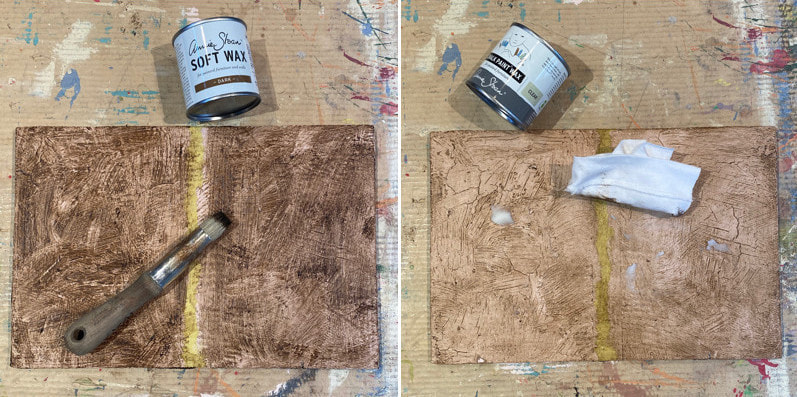 - 次に、ダークワックスをクリアワックスが適用された全面にワックスブラシもしくは布を使って塗り込みます。この段階でひび割れた亀裂の中にダークワックスが入り込むようしっかり塗り込みます。全体に塗りこんだ後は綺麗な布でダークワックス全体を拭き取ります。