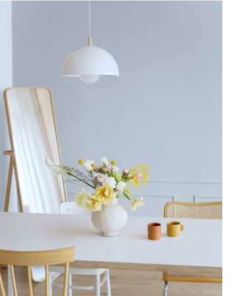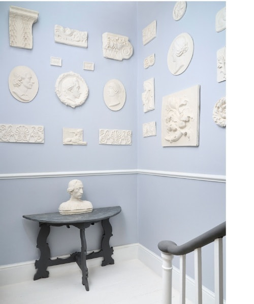 「ペールマロウ」は、グレーとブルーの間に位置する、クールで柔らかな色合いの紫がかった白の中間色です。19世紀の壮大なインテリアで使用されていたグレーの色合いを反射する光の伝統に基づいたパステル カラー。この色合いはチョークペイントのオールドバイオレットとピュアのカラーミックスによって作られました。