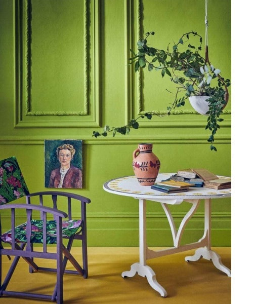 「ロドメル」は、ダムソンパープル(小さなプラム)の色です。夕暮れの雰囲気のあるインディゴの紫がかったブルーにインスピレーションを得た色で、ゴーギャンが好んだ複雑な紫です。他のクールな色合いと組み合わせて瞑想的な空間を演出したり、温かみのある色調と並べたりしてください。