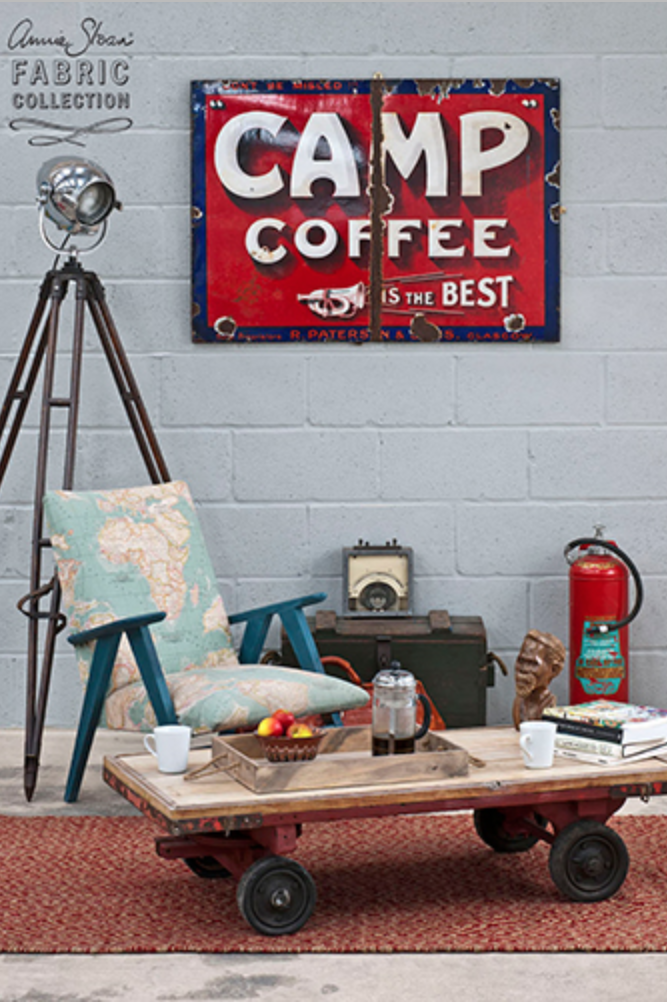 アニースローンファブリックコレクションの中でよく見られるファブリックの一つです。このビンテージプリントはどんな部屋にでも良く合います。横幅が2倍なのでお買い求めやすい価格となっております。